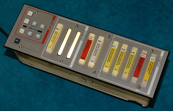 A piece of set dressing similar to those featured throughout Star Trek: Deep Space Nine. This item is a button panel similar to those found all over Deep Space Nine, notably to open doors, and is gray molded plastic featuring various, raised, rust-colored accents, a large central, oval-shaped button, a … |