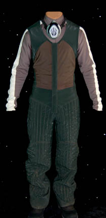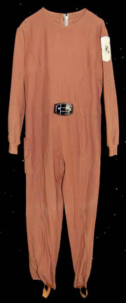 A brown Class-D Starfleet Earthbase uniform featured in Star Trek I: The Motion Picture. The costume is a full length brown jumpsuit with an open topped faux flap pocket on the right thigh, with an attached plastic bio-monitor, and an attached Earthbase patch on the left shoulder depicting the solar … |