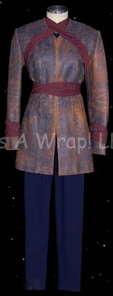 A costume featured in the Star Trek: Enterprise episode “The Seventh”, wherein “Subcommander T'Pol” (Jolene Blalock) asks “Captain Archer” (Scott Bakula) to assist her in apprehending a Vulcan fugitive that has been on the run for two decades. This costume is for wear by Anthony Montgomery in the role of … |