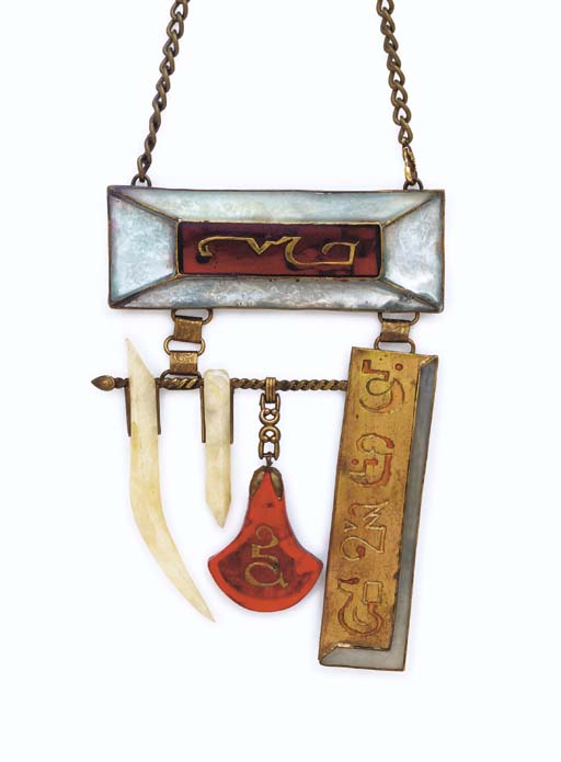 A prop necklace of brass and resin, engraved with Vulcan writing, brass chain -- <I>24in. long</I> -- worn by Edna Glover as one of the Vulcan masters in the Kohlinahr sequence of <I>Star Trek: The Motion Picture</I> |