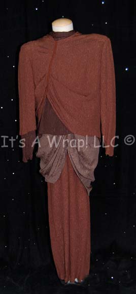 A costume featured in the Star Trek: Deep Space Nine episode “The Search” for wear by Star Trek veteran actor John Fleck” in his portrayal of “First Minister Ornithar” of the Karemma, a Dominion controlled world. This costume appears to consist of a three-layered garment in varying shades of brown, … |