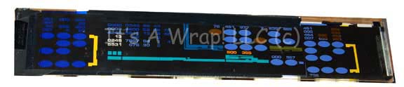 A console computer interface like those appearing variously in Star Trek feature films and occasionally in episodes of Star Trek: The Next Generation. The item is composed of two sheets of clear acrylic with a multi-colored graphical application pressed between and with adhered together edges. The item depicts blue, green, … |