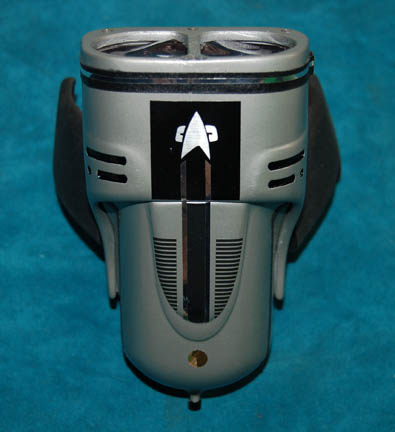 An impressive 24th Century Starfleet combadge made for wear on one or more of the Star Trek 24th century shows or feature films. It is made of resin painted gold and silver with Velcro backing. The combadges were made of resin rather than metal so as not to reflect off … |