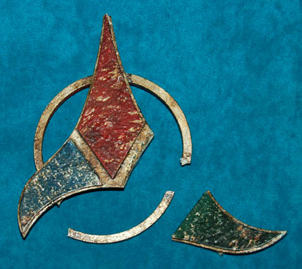 The Klingons are a space-borne culture with a large range of spacecrafts for different missions, including defense, exploration and commerce. This is a Klingon emblem made of resin and painted firstly gold then red, blue and green on the respective points. It is broken into three pieces that need to … |