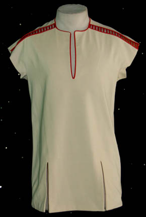 A costume featured in Star Trek II: The Wrath of Khan the style of which appeared on researchers at the Regula I laboratory. The costume is a sleeveless shirt with a strip of open area across the shoulders and collarbones trimmed with red and held together by red piping and … |