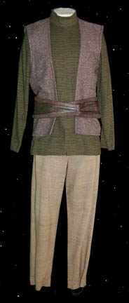A costume featured in the last TNG era feature film, Star Trek: Nemesis, and then reused in one of the last episodes of Star Trek: Enterprise, “Demons”. The costume consists of a long-sleeved, full-length jumpsuit in a distressed, aged, yellowed-brown color featuring diagonal quilting along the shoulders, Velcro and laced … |