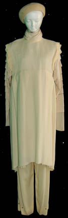 Riva's Chorus was a group of three telepaths that attuned the famed mediator “Riva’s” (Howie Seago) thoughts and emotions since he was deaf. They were featured in the Star Trek: The Next Generation episode “Loud as a Whisper”. This costume was worn by the “Scholar / artist” since each member … |