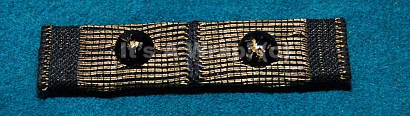 A Starfleet officer’s campaign ribbon created for Star Trek VI: The Undiscovered Country and of the style appearing in Star Trek VII: Generations. The item is fabric covered sheet plastic with twin pin backs. The item is colored gold with matching black stripes on the ends and two black metal … |