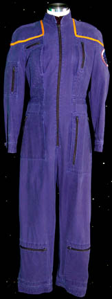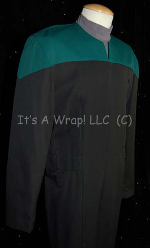 A costume featured in various episodes of Star Trek: Deep Space Nine. This costume is for wear by Cathy DeBuono who was the stand-in, photo and body double for Terry Farrell in seasons 5 and 6 of DS9, a long-sleeved, full-length, black, Starfleet uniform jumpsuit featuring Sciences Blue division colors … |