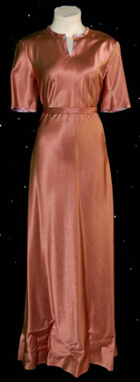 A costume worn in various sequences of Star Trek I: The Motion Picture by off-duty female officers. A light, beige, long-sleeved shirt with ties on the side, textured v-neck collar and cuffs, very minor spotting due to time and storage, and corresponding trousers. |