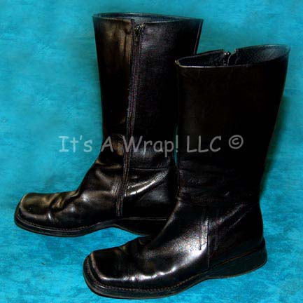 A pair of boots worn by female Starfleet members in various episodes of Star Trek: Enterprise. These boots are square-toed, mid-calf, black leather, ‘Charles David’ brand boots in size 7 with very minor scuffing on the soles. |