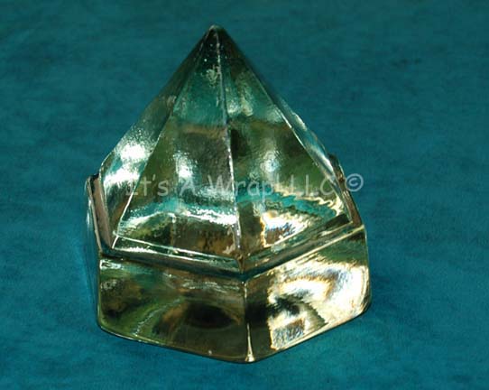 A fashioned glass prop believed to have been featured in the Star Trek: Deep Space Nine episode “Hippocratic Oath” for use as a highly prized ‘Tallonian Crystal’. The item is weighty, hexagonally shaped solid glass with a pyramidal top. The item measures approx. 4.5 X 4 X 4 X 4 … |