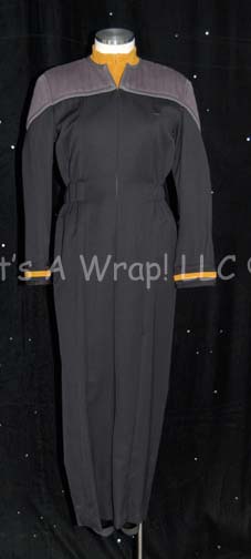 A costume similar to those featured throughout Star Trek: Deep Space Nine. This costume is for wear by Bajoran Security Officers and consists of a long-sleeved, brown jacket featuring tan shoulders and sleeves, a Velcro patch on the right breast for a commbadge (included), matching trousers with stirrups for the … |