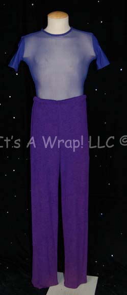 A costume featured in the Star Trek: Deep Space Nine episode “Let He Who is Without Sin…”. This costume includes a blue mesh fabric top with built-in blue spandex shorts and two pairs of purple crinkled fabric trousers. A sewn in tag reads ‘DS9, Karl Moseman’ along with a “MUTO … |