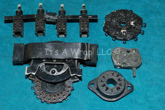 A set of metal and molded resin uniform components for Jem’Hadar costumes appearing variously in Star Trek: Deep Space Nine. The items are all black painted, some with evidence of costume removal, spring loaded buttons, holes for stitching or snaps for attachment. The largest item measures approx. 3.5 X 2.5 … |