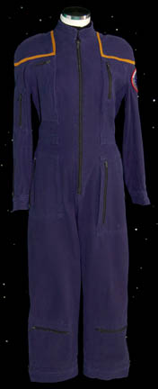 A brown-colored Starfleet two piece ‘Class-A' uniform with pants that Velcro and clasp at the ankles for size adjustment, and a zip up the spine, with an interior Paramount tag sewn in. |