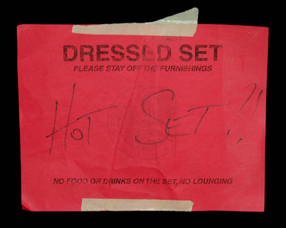 This red “Dressed Set” sign made of cardstock was used on the set of Star Trek: Enterprise by the production staff to warn visitors that it was a “HOT SET!!” and to “please stay off the furnishings” It even has the original tape still on it! One can only guess … |