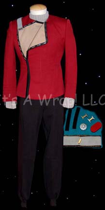 A Starfleet Class-A officer’s uniform configured to be the ‘night watch communications officer’ on the “USS Excelsior” from Star Trek VI: The Undiscovered Country as portrayed by Christian Slater. The costume is a set of black uniform trousers, a long sleeved gray uniform shirt with ribbing at the cuffs and … |