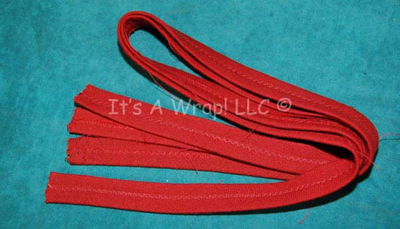 A pair of red fabric strips created to run the length of Starfleet uniform trouser legs appearing variously in Star Trek feature films and episodic television. The items measure approx. 42 inches long and are 1.25 inches wide. The items retain threads from costume removal. |
