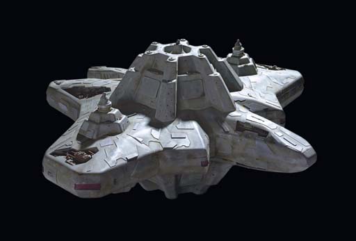 A Pralor space ship model of vacuum-formed plastic and resin parts -- <I>28x32in.</I> -- made for "Prototype" in <I>Star Trek: Voyager</I>, also appearing as the Cravic ship in the same episode |