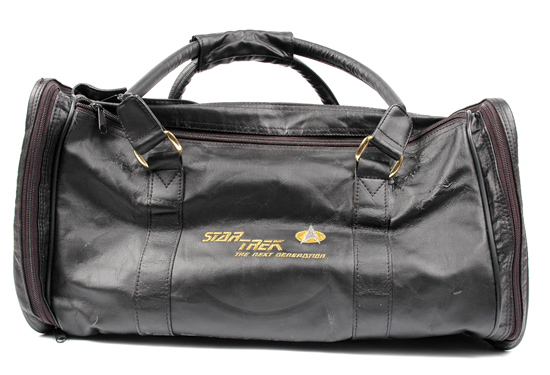 Six Star Trek items: black fanny pack with gold and silver Star Trek logo and "ST: TNG" in gold lettering below; a gray vinyl tote bag with blue straps and a red, blue and gray logo: "Interplanetary Imaging Team USS Enterprise NCC-1701D"; and a 36" x 24" color Star Trek: … |