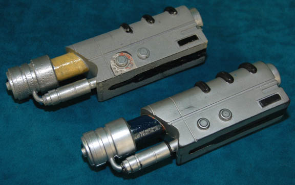 (Paramount-TV, 1993-99) Working Klingon tricorder made of resin that is painted brown & black, with color detailing. There is a button trigger at the top that releases a small compartment at the front and illuminates the various LED lights. From Star Trek DS9. Measures approx. 7 in. in length. |